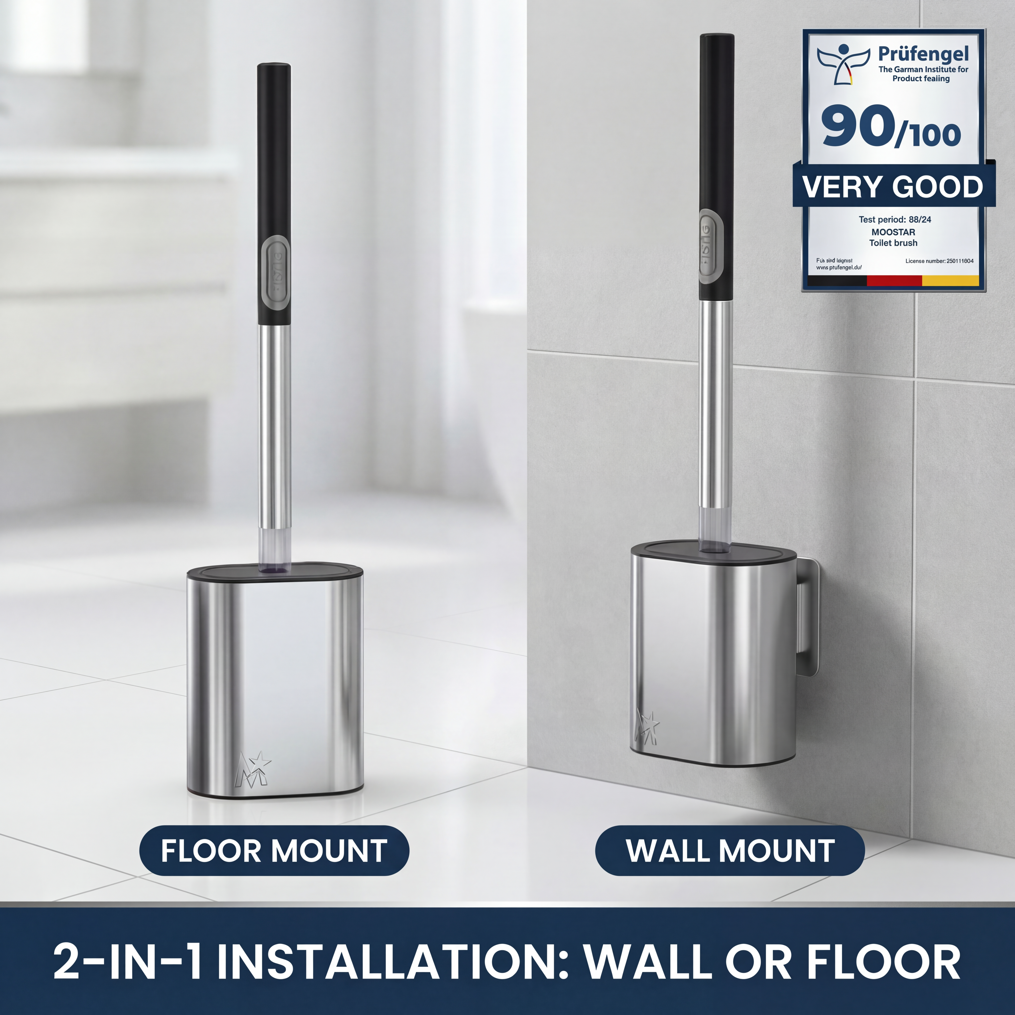 It really depends on your space. If you want to save floor space and create a more open feel, wall mounting our Moostar Push Brush can be a great option. If you prefer flexibility and easy movement, the free-standing design works just as well. We designed it to give you both choices, so you can decide what suits your bathroom best.
