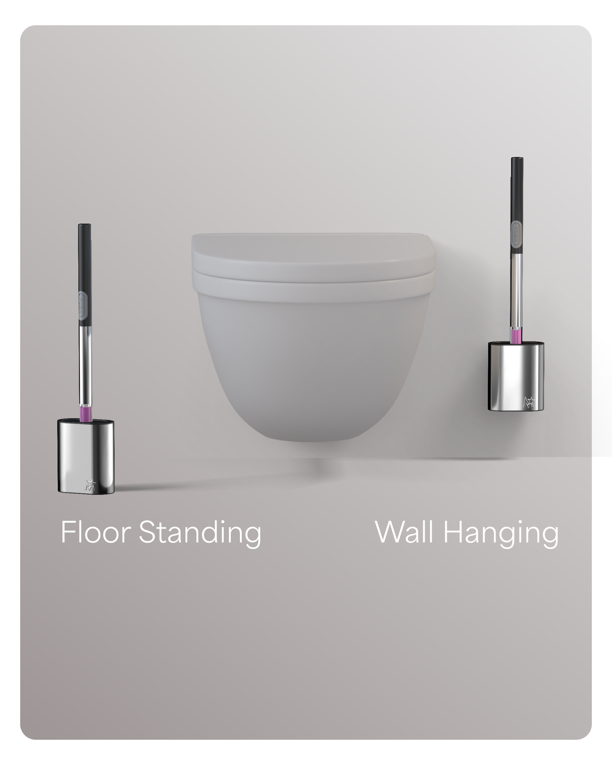 The dual-option wall and floor mount toilet brush is a versatile cleaning tool designed for convenience and flexibility. It features a super strong adhesive that allows for easy, screw-free mounting on the wall, as well as a freestanding base for floor placement. This innovative design offers users the choice to optimize their space while maintaining the brush's stability.